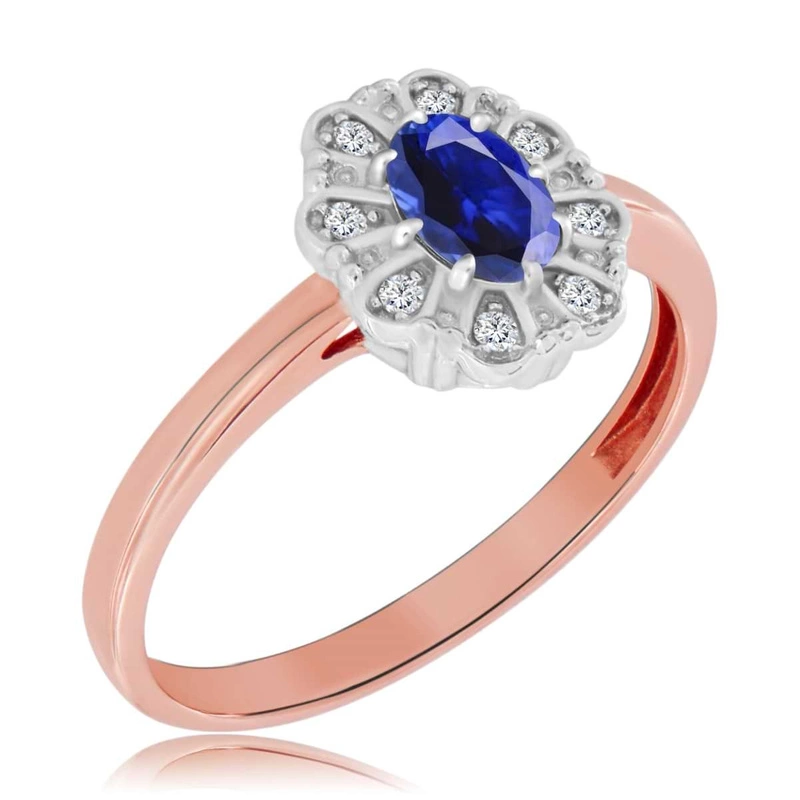 Pierścionek z szafirem i diamentami tworzący kwiat różowe złoto 585