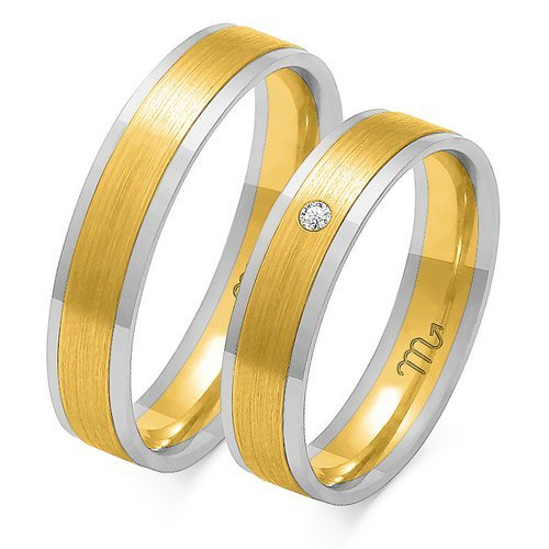 Obrączki ślubne płaskie 5mm z kamieniem dwukolorowe żółte i białe próba 585