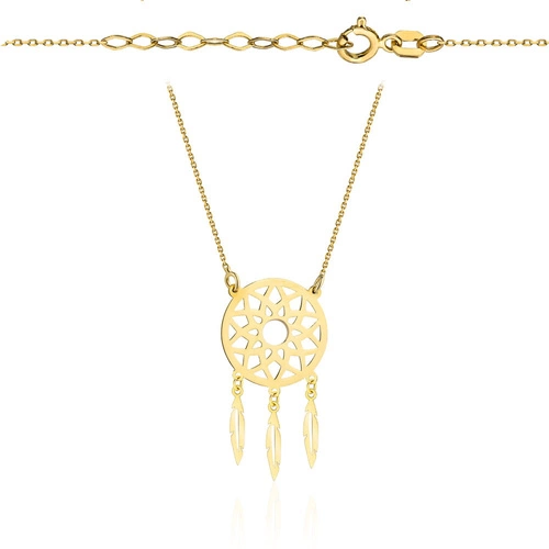 Naszyjnik złoty z zieloną cyrkonią w złotej zaokrąglonej oprawie (Gramatura: 1.36)