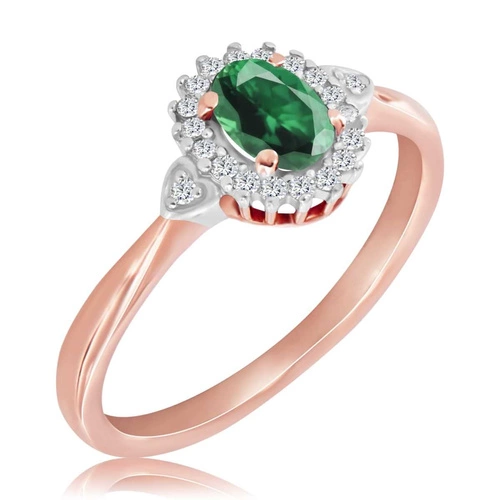 Wyjątkowy różowy pierścionek ze szmaragdem i diamentami