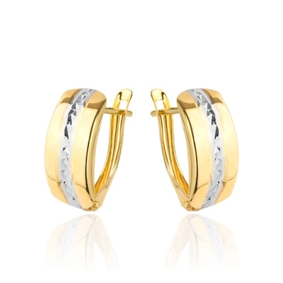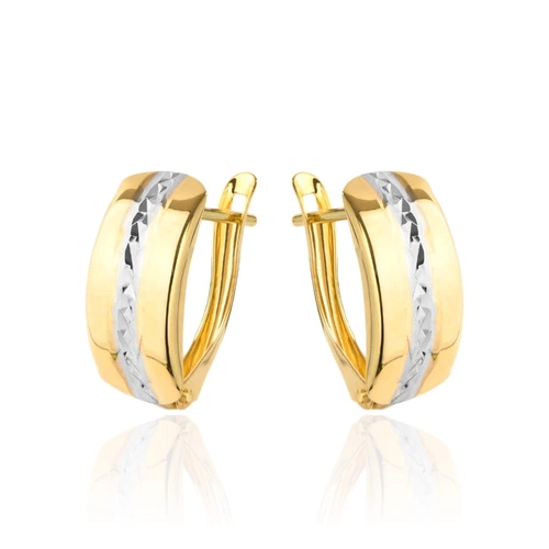 Kolczyki złote gładkie z diamentowanymi brzegami
