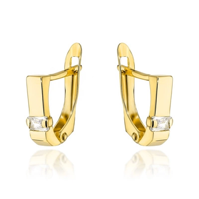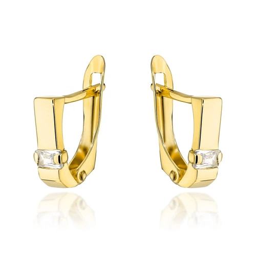 Kolczyki złote z kolekcji "COLORFUL STONE" z eleganckim zapięciem - jasny zielony kwarc kwadrat