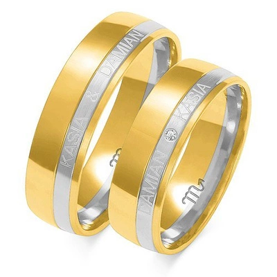 Nietypowe obrączki ślubne z imionami 6mm dwukolorowe żółte i białe złoto próba 585