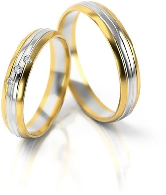 Obrączki ślubne półokrągłe ozdobione liniami i kamieniami 4mm dwukolorowe białe i żółte złoto próba 585
