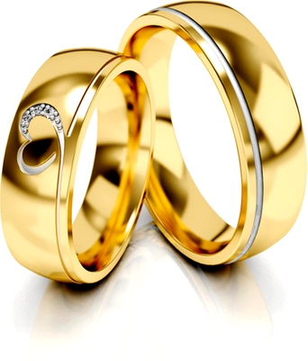 Obrączki ślubne półokrągłe 5mm z sercem dwukolorowe żółte i białe złoto próba 585