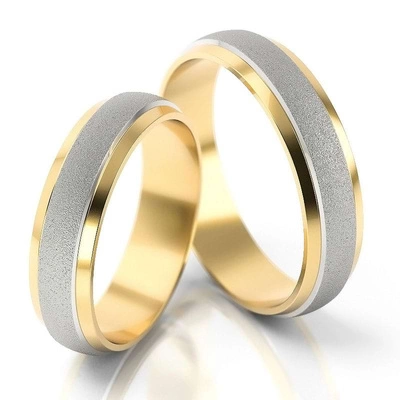 Obrączki ślubne półokrągłe ozdobione matowym paskiem 5mm dwukolorowe złoto próba 585