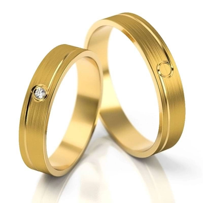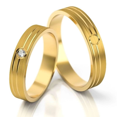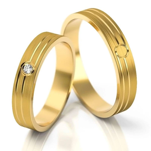 Obrączki ślubne matowe 4mm z brylantami żółte złoto 585