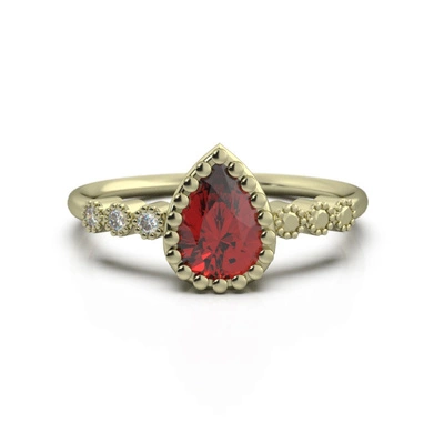 Pierścionek z granatem i brylantami żółte złoto