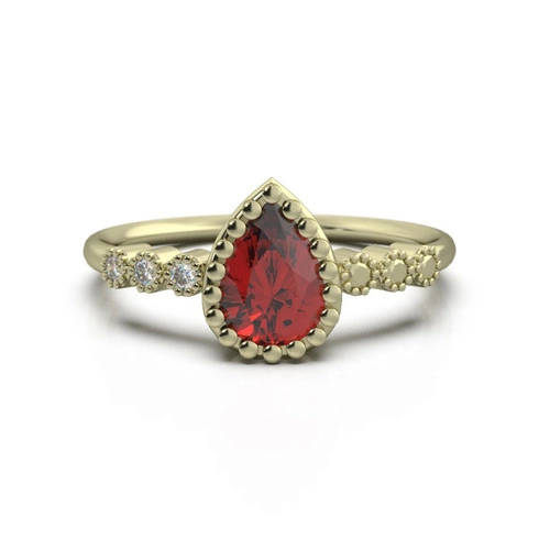 Pierścionek z granatem żółte złoto