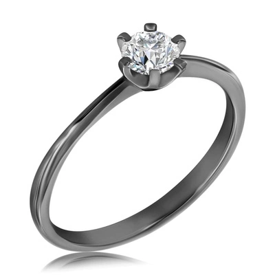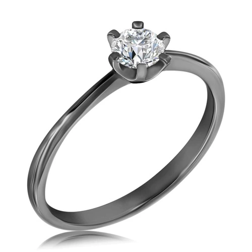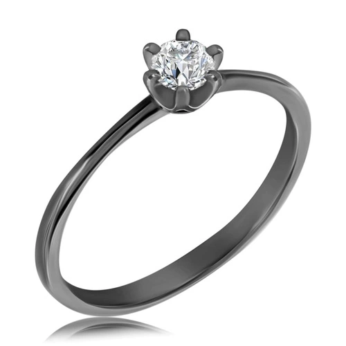 Czarny pierścionek z diamentem i mniejszymi diamentami po bokach