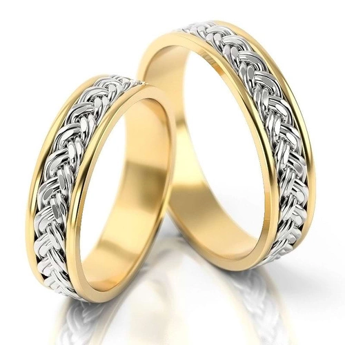 Obrączki ślubne z plecionym warkoczem 5mm dwukolorowe złoto żółte i białe próba 585