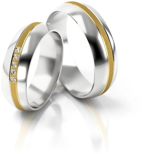 Obrączki ślubne półokrągłe z fugą i kamieniami 6mm dwukolorowe białe i żółte złoto próba 585