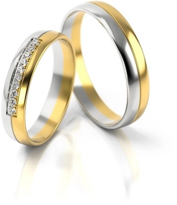 Obrączki ślubne półokrągłe z kamieniami 4mm dwukolorowe żółte i białe złoto próba 585