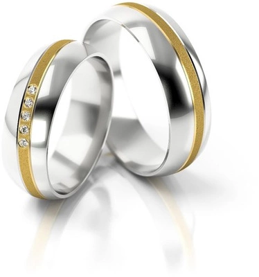 Obrączki ślubne z diamentem w nietypowej oprawie 4mm dwukolorowe białe i żółte złoto próba 585