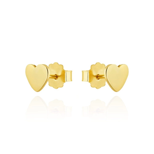 Kolczyki złote serduszka z cyrkoniami na biglu