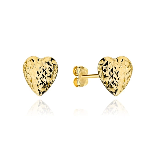 Kolczyki złote wypukłe serce otoczone sercem z cyrkonii