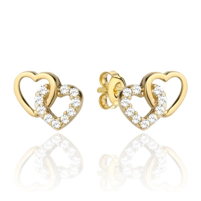 Kolczyki złote splecione serca z cyrkoniami ze złotymi łapkami