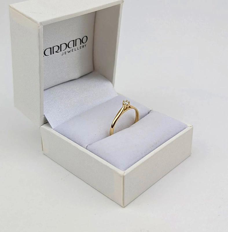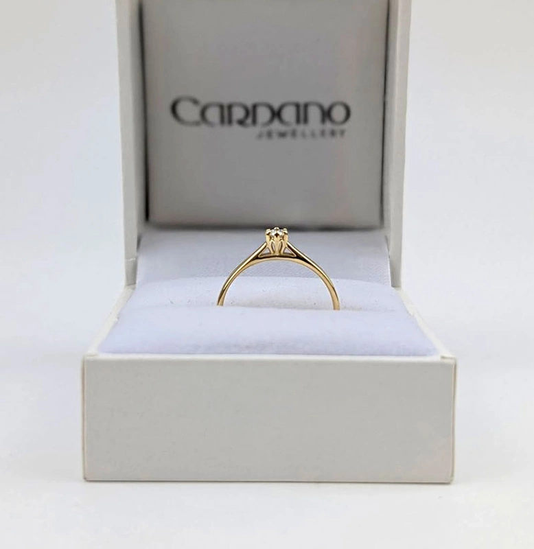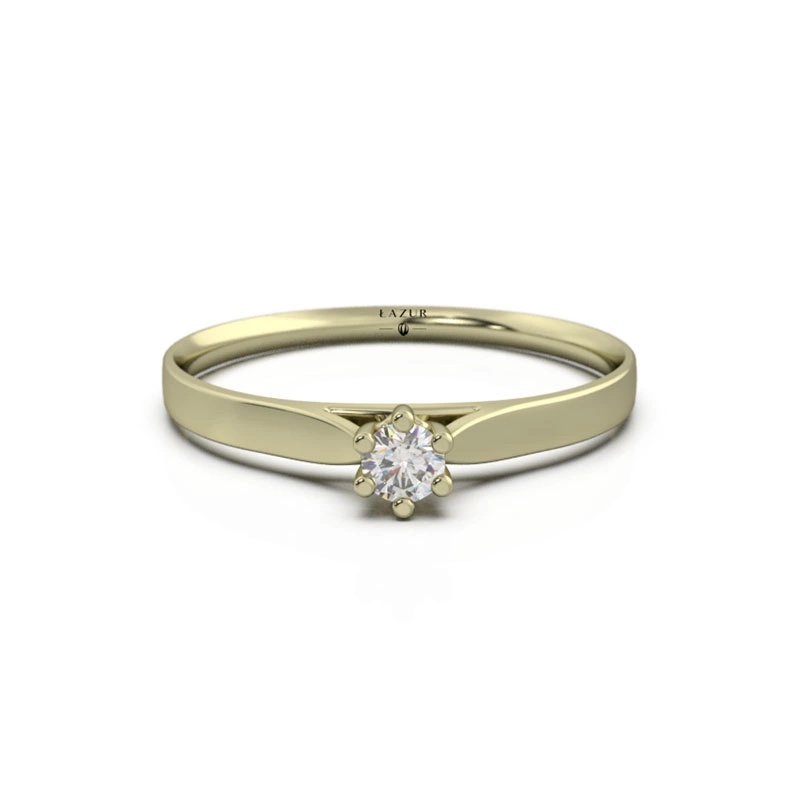 • TERMIN REALIZACJI W 7DNI DOSTĘPNY DLA ROZMIARÓW 11-16. Klasyczny pierścionek z delikatnie zdobionym złotym koszykiem i brylantem o perfekcyjnym szlifie i krystalicznie czystym blasku.