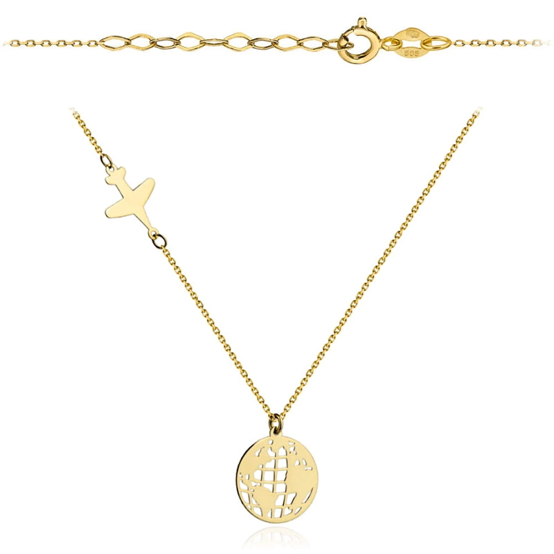 Naszyjnik złoty samolot i kula ziemska (Gramatura: 1.41)