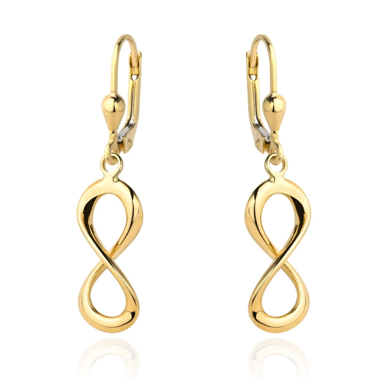 Kolczyki złote znaki nieskończoności na angielskim zapięciu