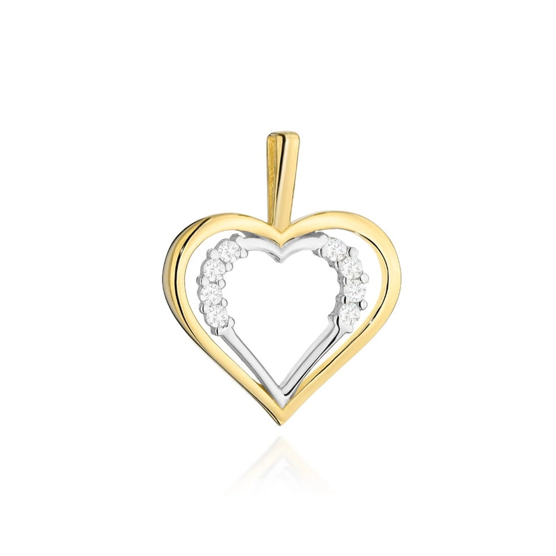 Zawieszka złota dwa serca i cyrkonie w dwóch kolorach złota