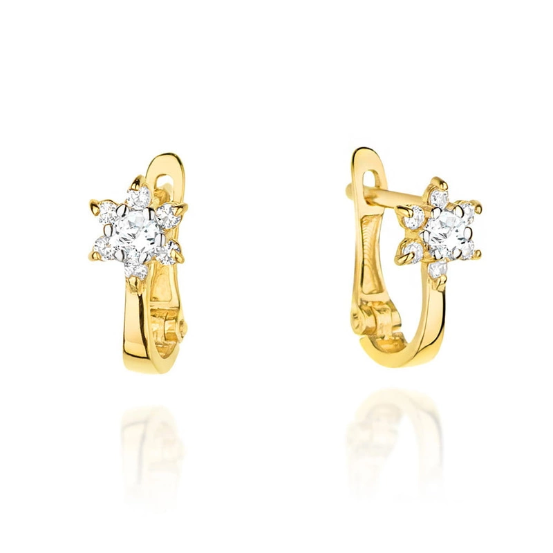 Kolczyki złote kwiatuszki z cyrkoniami