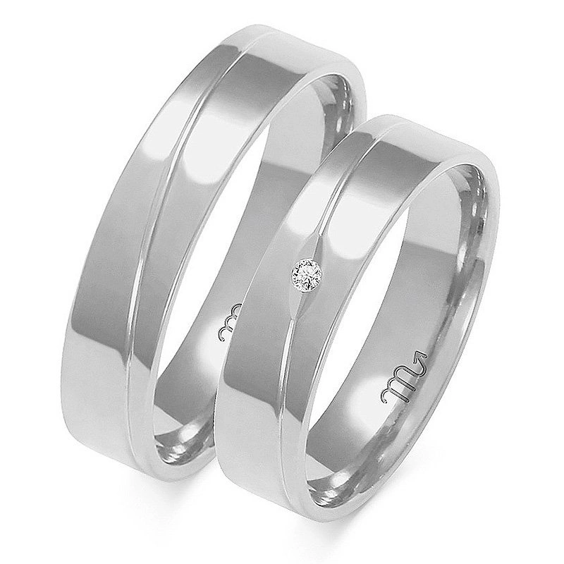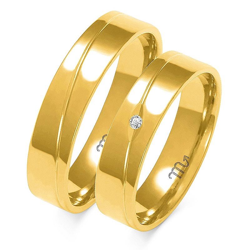 Obrączki ślubne 5mm płaskie z fugą i kamieniem złoto 585
