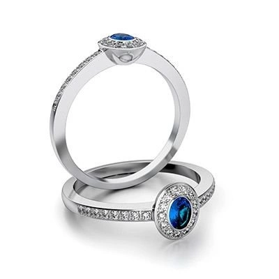Złoty pierścionek z szafirem i brylantami