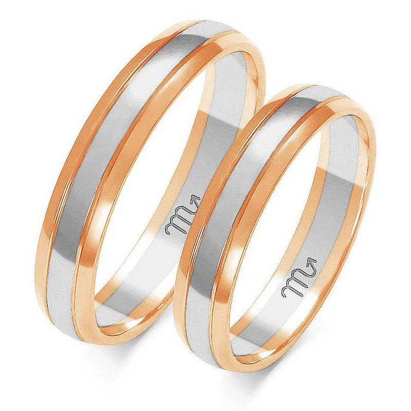 Obrączki ślubne półokrągłe 4mm z dwukolorowego złota żółtego i białego próba 585