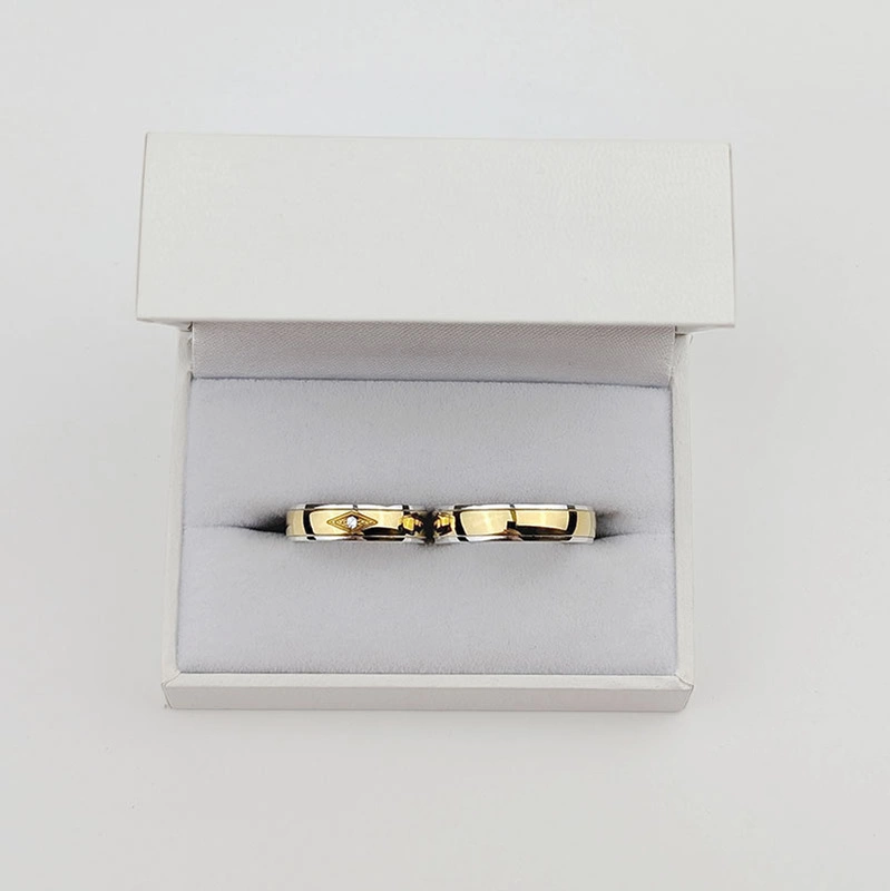 Obrączki ślubne półokrągłe 5,0mm ozdobione kamieniem dwukolorowe żółte i białe próba 585
