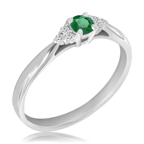 Pierścionek ze szmaragdem i diamentami białe złoto 585