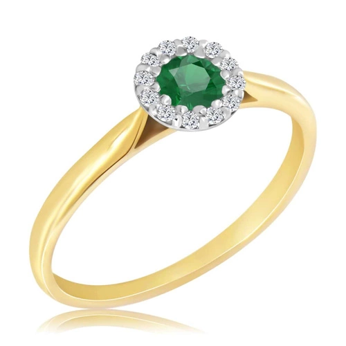Pierścionek ze szmaragdem i diamentami żółte złoto 585