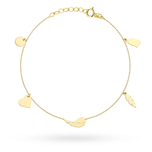 Bransoletka złota z gwiazdką, kółkiem, skrzydełkiem i jaskółką (Gramatura: 0.87)