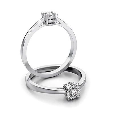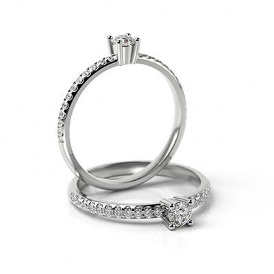 Pierścionek ze szmaragdem i diamentami białe złoto 585
