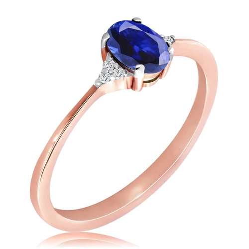 Pierścionek z szafirem i diamentami z różowego złota 585