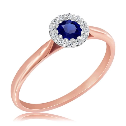 Pierścionek z szafirem i diamentami różowe złoto 585