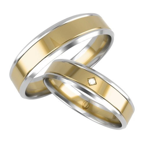 Płaskie obrączki ślubne z kamieniem 5mm dwukolorowe żółte i białe złoto próba 585