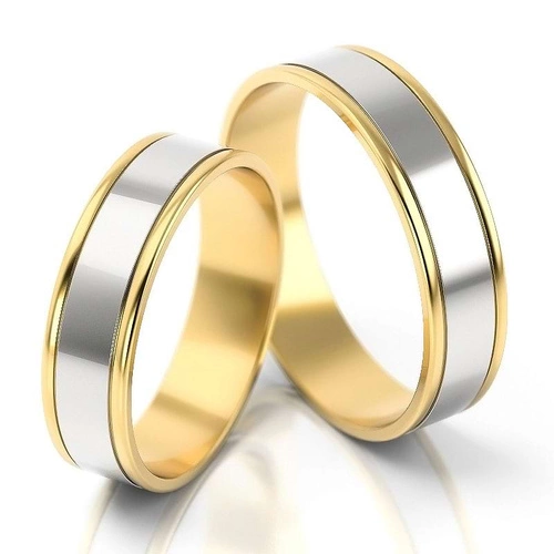 Obrączki ślubne płaskie z fugami 5mm dwukolorowe białe i żółte złoto próba 585