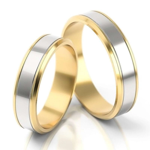 Obrączki ślubne płaskie z fazami 5mm dwukolorowe żółte i białe złoto próba 585