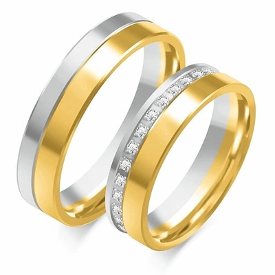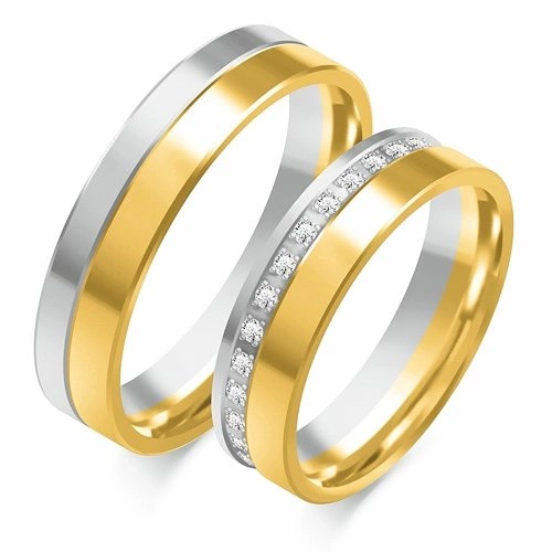 Obrączki ślubne płaskie z kamieniami 5mm dwukolorowe z żółtego i białego złota próba 585