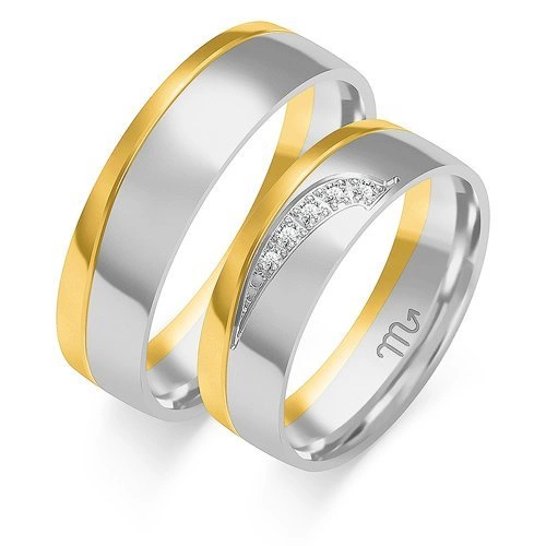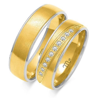 Obrączki ślubne półokrągłe z fugą i diamentami 6mm dwukolorowe białe i żółte złoto próba 585