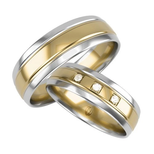 Obrączki ślubne z diamentem w nietypowej oprawie 4mm dwukolorowe białe i żółte złoto próba 585