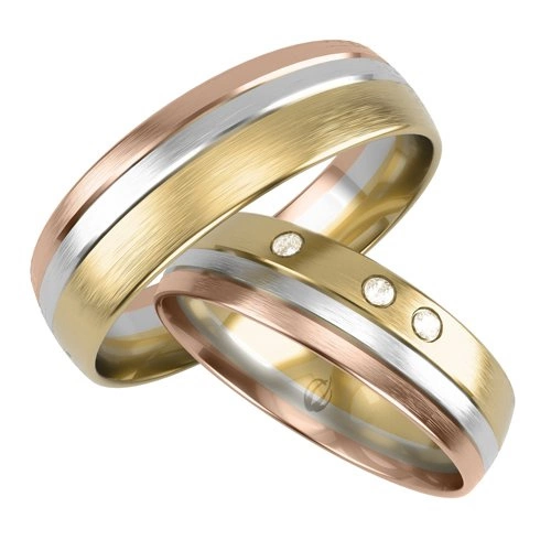 Obrączki ślubne półokrągłe z kamieniami 6mm trójkolorowe złoto próba 585