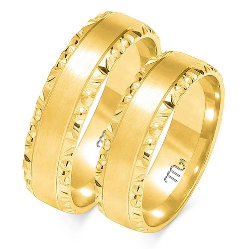 Obrączki ślubne z wzorem i kamieniem 5mm próba 585