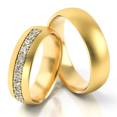 Obrączki ślubne z diamentami 6mm półokrągłe żółte złoto 585