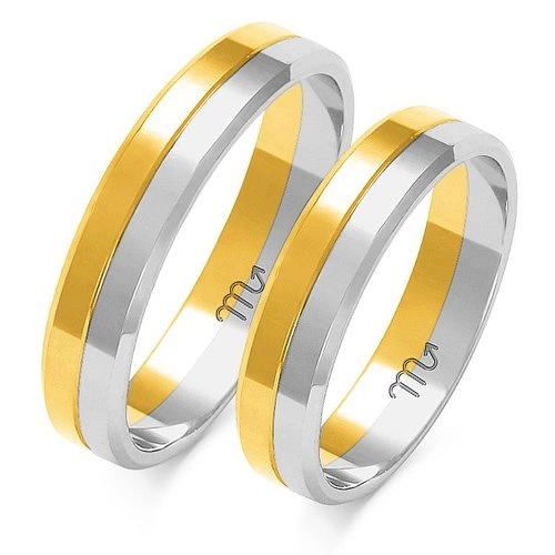 Obrączki ślubne płaskie z fazami 5mm dwukolorowe z białego i żółtego złota próba 585