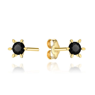 Kolczyki złote z czarnym kamieniem w sześciu łapkach