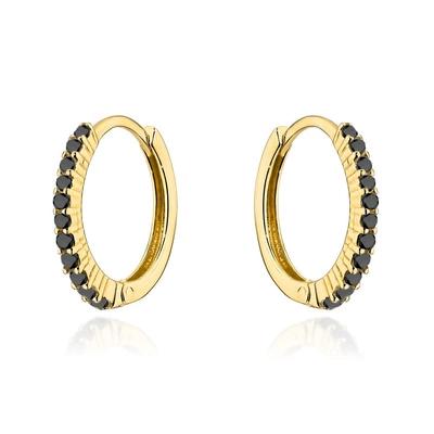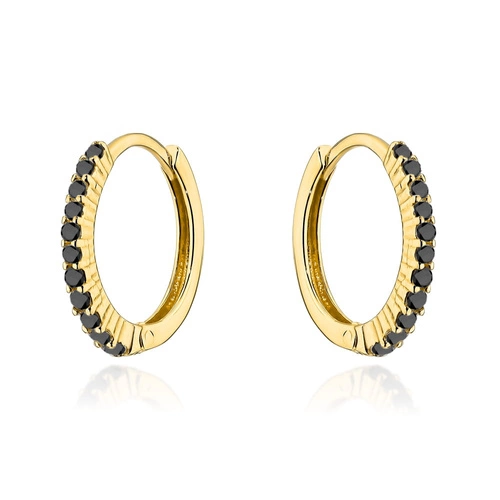 Kolczyki złote z czarnymi kamieniami na kreolu