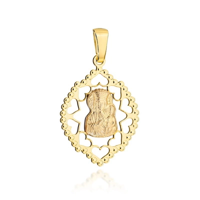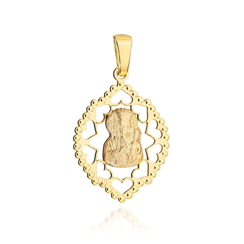 Medalik złoty Matka Boska Częstochowska w ażurowej oprawie