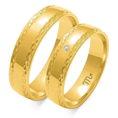 Obrączki ślubne fazowane ze wzorem i kamieniem 5mm złoto próba 585